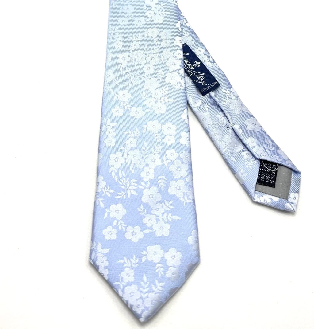 Gravata slim de seda jacquard rosa cangiante desenho floreal prata.
