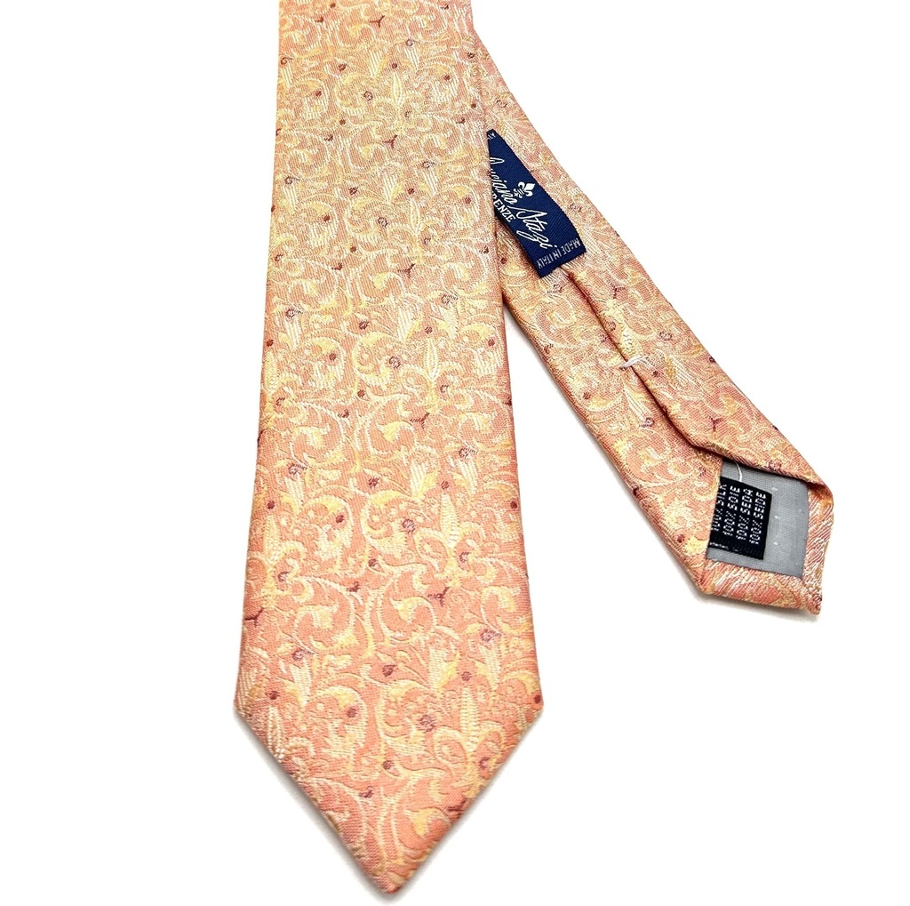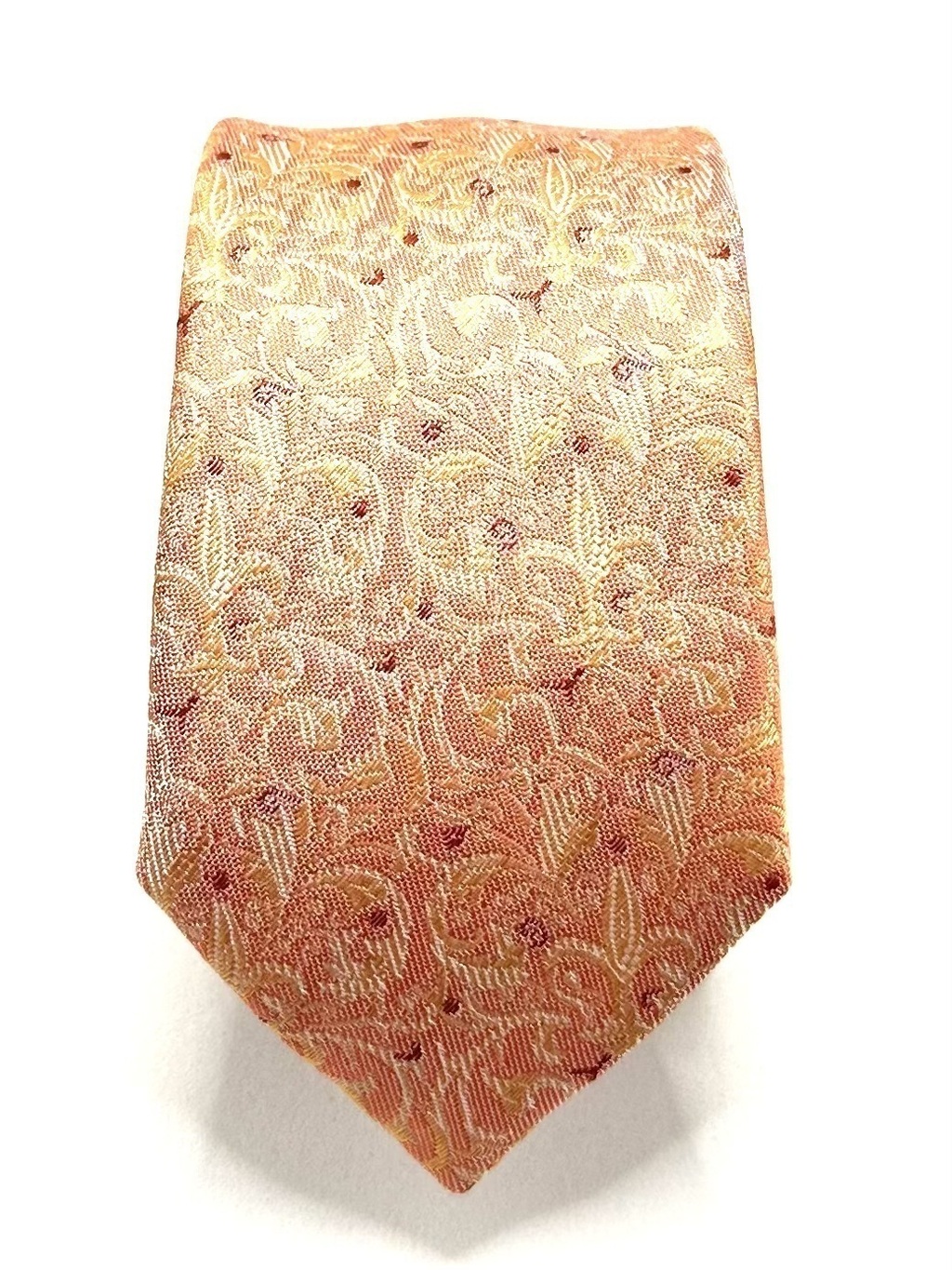 Gravata slim de seda jacquard laranja desenho damascado giglio de Florença.