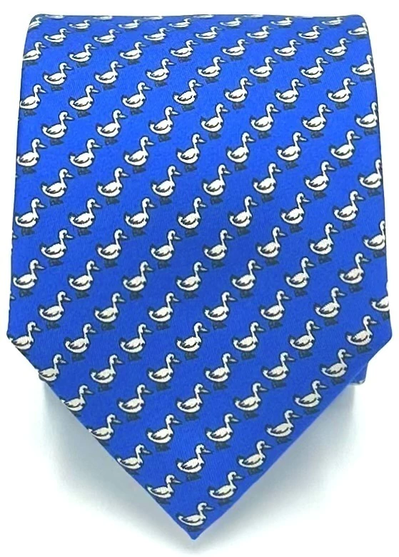 Gravata twill de seda azul desehno patinhos.Feita artesanalmente na Itália.100% seda italiana.Largura: 8 cm.Comprimento: 148 cm.
